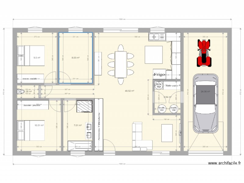 Maison Plain Pied Facade 15m 90m2 Plan 8 Pieces 111 M2 Dessine Par Stevenjulyanna